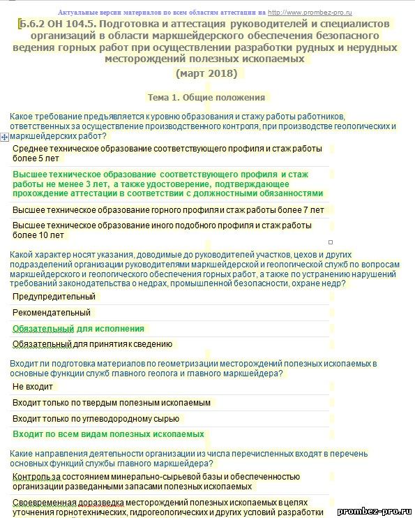 ОН 104.5 (март 2018) Подготовка и аттестация в области маркшейдерского обеспечения безопасного ведения горных работ руководителей и специалистов организаций, осуществляющих разработку рудных